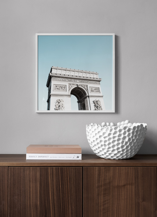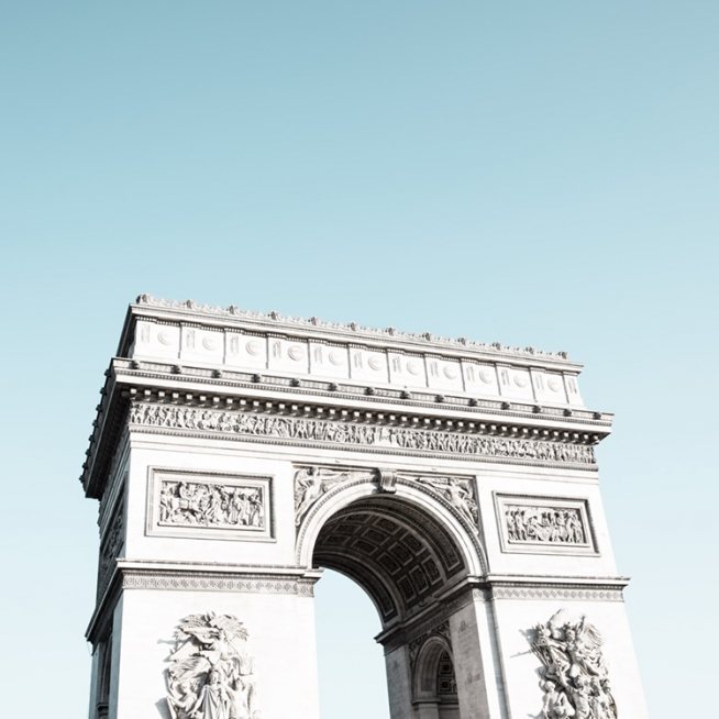 Handpicked Fin fotoplakat av Triumfbuen i Paris, laget av vårt kreative team. Denne plakaten, med Triumfbuen som motiv, viser den ikoniske buen med vakre detaljer, og med den fargesterke blå himmelen som bakgrunn.