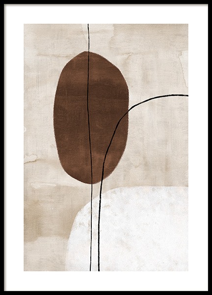 Handpicked Abstrakt maleri med brune, svarte og hvite former og blyantstreker mot en beige bakgrunn. Denne plakaten passer perfekt sammen med Art Shapes No2 når du vil skape et naturlig midtpunkt i hjemmet!