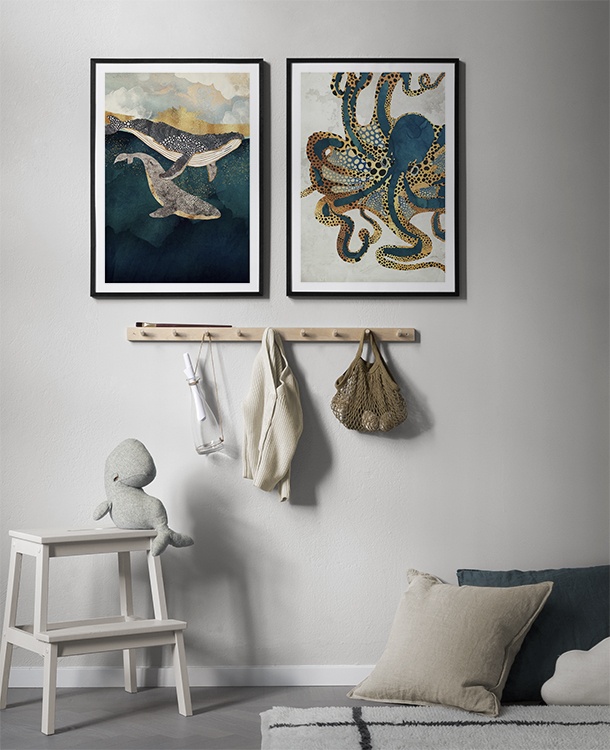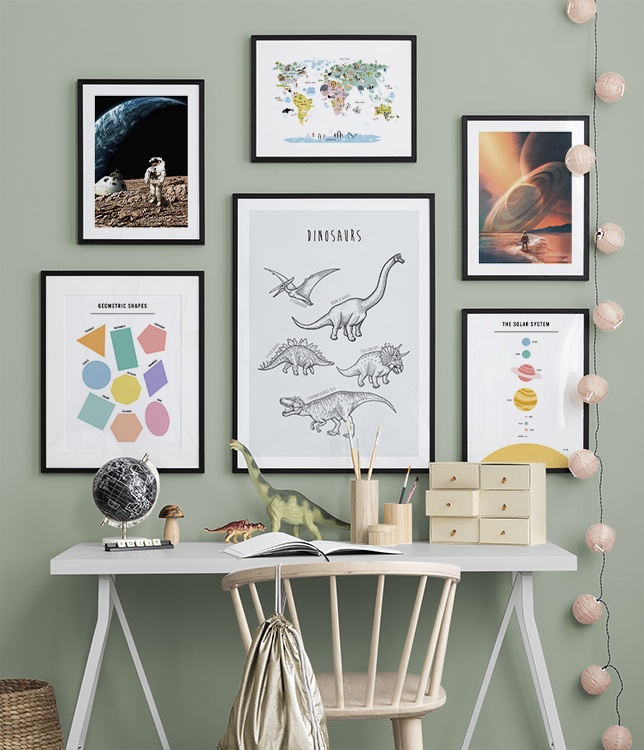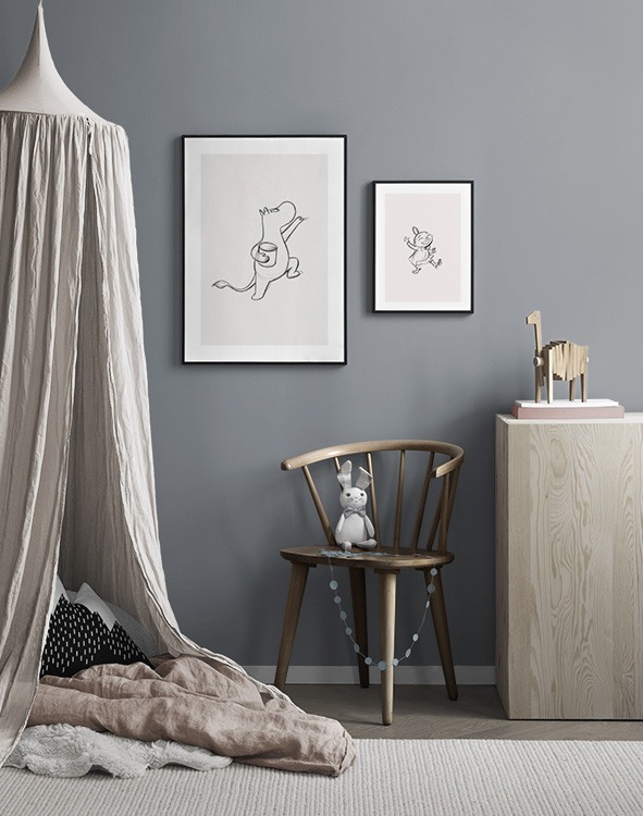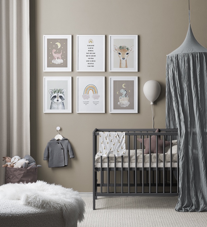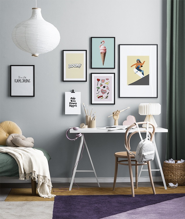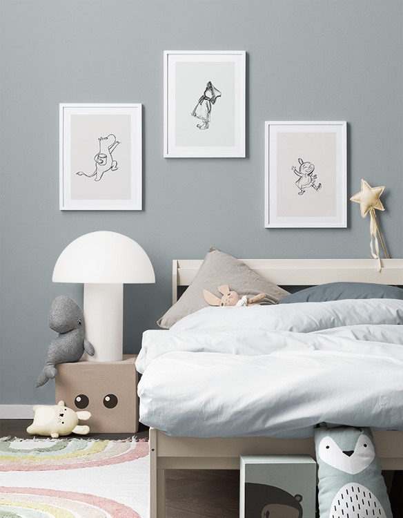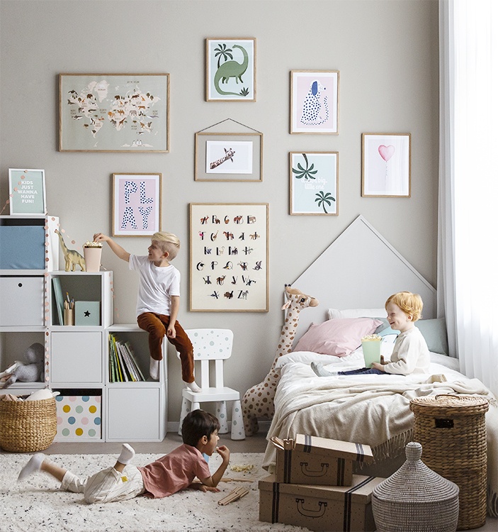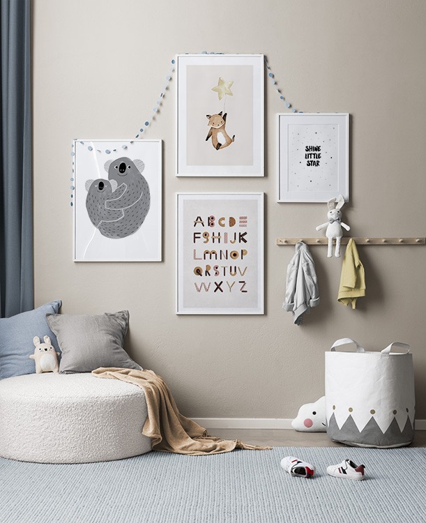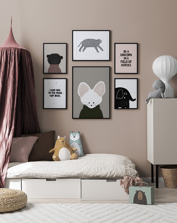 Når barna vokser, får de også nye interesser. For å slippe å måtte ommøblere titt og ofte, kan det være smart å bruke washiteip eller plakatklemmer til barnas plakater. Da slipper du hull og merker i veggen når du bytter ut plakater og bilder. Slipp fantasien løs når du innreder barnerommet. Hvis du vil kjøpe noen av bildekombinasjonene for barnerommet, trenger du bare å klikke på bildet. Du kan også besøke kategorien Barneplakater for å se alle motivene våre.