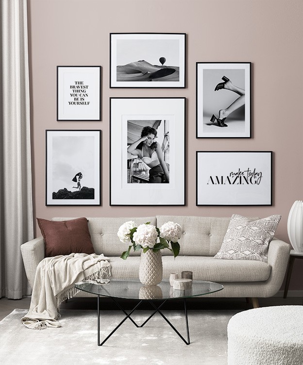 Bla gjennom inspirerende bildevegger med både kontrastrike svarthvitt-plakater og plakater som har en mykere gråskala. Trendy monokrome eller svarthvite klassikere – vi har svarthvitt-bildevegger for alle.