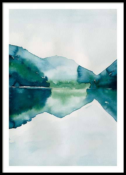 Watercolor Mountain Reflection Plakat