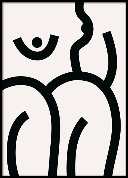 Handpicked Abstrakt illustrasjon med bryster tegnet med kraftige, svarte strøk mot en lys beige bakgrunn. Vi mener alle hjem trenger minst én grafisk illustrasjon! Dette abstrakte motivet passer perfekt på en bildevegg sammen med andre illustrasjoner eller fotokunst. Eller enda bedre – kombiner den med Bold Body No1!