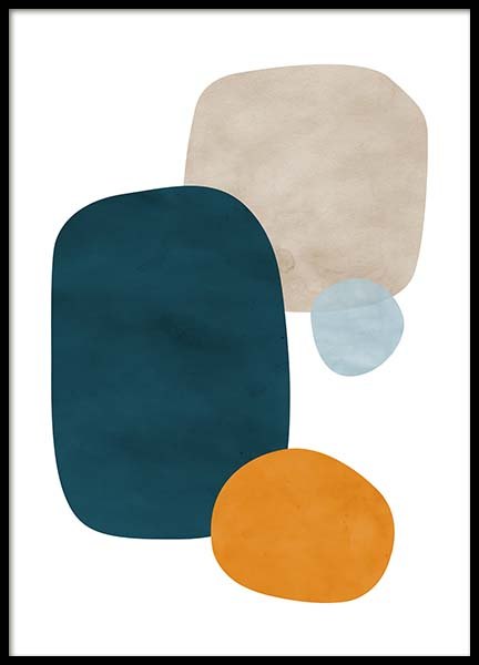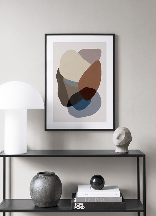 Handpicked Maleri med en klynge av former i ulike nyanser av brunt og blått mot en beige bakgrunn. Når du velger plakater i jordnære og rolige farger, skaper du en avslappet atmosfære i hjemmet! Denne plakaten passer perfekt sammen med Browns and Blues No2.
