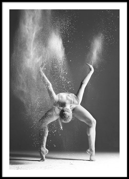 Handpicked Plakat med svarthvitt foto av danser fanget i flott bevegelser. Et veldig fint og effektfult bilde som gjør seg godt på veggen i hvilket som helst rom. Se gjerne på våre andre plakater i kategorien Fotokunst. Mange av motivene er fine å blande sammen. Plakaten har en «innebygd» passepartout som gir en fin innramming av motivet.