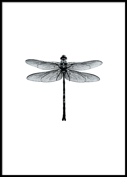 Svartvit poster med trollslända. Köp snygga tavlor online.
