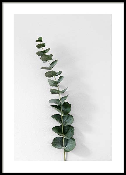 Handpicked Plakaten forestiller en eukalyptusplante med tre kvister, som ligger mot en lysegrå bakgrunn. Plakatene Eucalyptus Branch One og Eucalyptus Branch Two sammen med denne blir til fine kombinasjoner.
