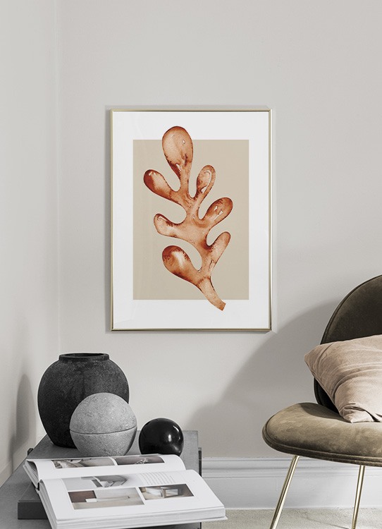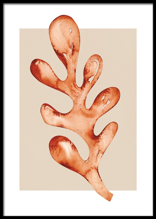 Handpicked Akvarell av en hasselnøttfarget korall mot en beige bakgrunn. Med varme og levende farger på veggene, blir rommet innbydende og moderne.