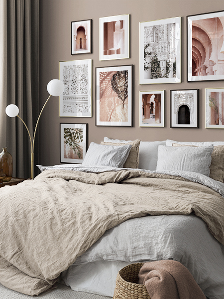 Palmer i vinden, speilet i vannet i et basseng, gir oss lyst til å reise verden rundt! Denne kolleksjonen viser dette vakre stedets magi og mystikk. Med vegger dekket i mosaikk i forskjellige pastellfarger, buede former, forgylte kupler og håndlagde detaljer var det virkelig kjærlighet ved første blikk da vi møtte Marrakech. Vi ble slått i bakken av dette hemmelige stedets fantastiske historie og tradisjon. I denne kolleksjonen har Desenio Design Studio forsøkt å fange arven fra Marrakech, med fokus på gammel arkitektur.