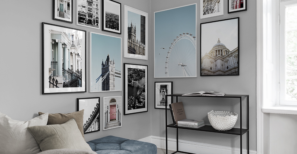 Pynt opp veggene dine med majestetiske St Paul’s Cathedral, den mektige kirken Westminster Abbey eller det kjente pariserhjulet London Eye – ett av Londons klassiske landemerker. Du finner også bilder av London i en fargeskala som vi vanligvis ikke forbinder med byen, med motiver fra gatene rundt Primrose Hill og Notting Hill med hus og dører i mintgrønne, rosa og gule nyanser.