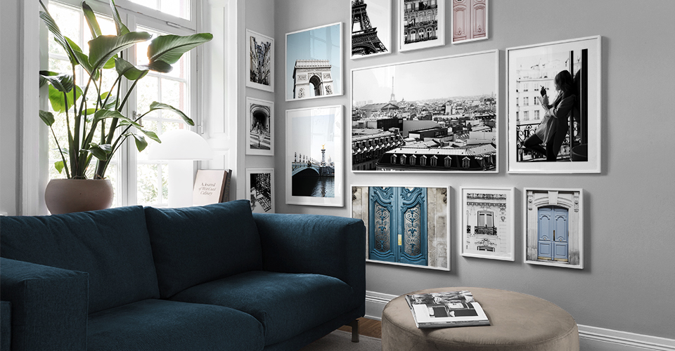 Innred med eksklusivt fotograferte plakater fra Paris, og skap en personlig og unik bildevegg. Velg om du vil satse på en bildevegg som blir en hyllest til Paris med svarthvitt-bilder av de pittoreske kafeene, den vakre arkitekturen og de fargerike dørene som vi gjerne skulle bodd bak. For et elegant og moderne interiør blir det aldri feil med litt av Paris i hjemmet. Kolleksjonen består av 24 unike motiver i svarthvitt med innslag av toner i blått og rosa.