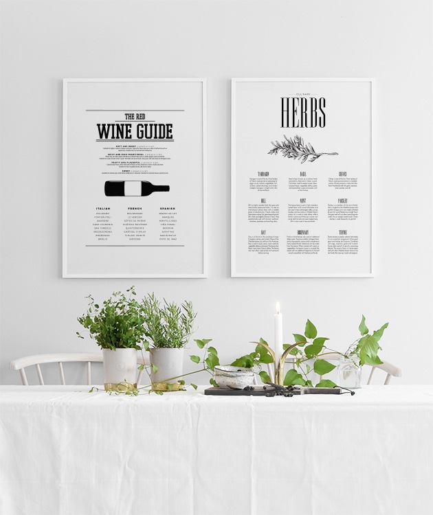 Vinguide på plakat til kjøkkenet, innred med kjøkkenplakater