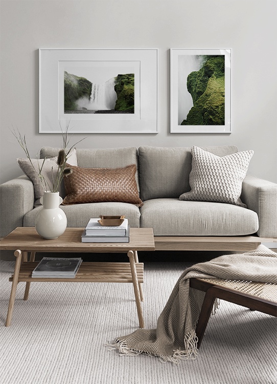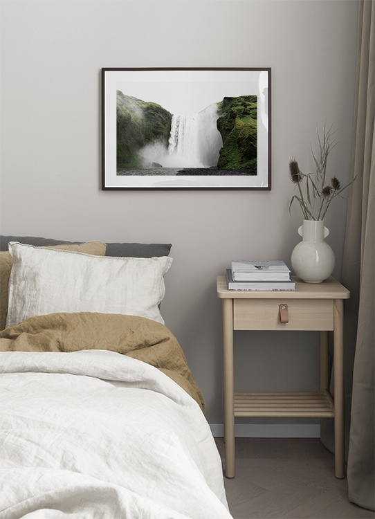 Handpicked Fotografi av fossen Skogafoss på Island. Bli med Desenio Design Studio på en fantastisk tur til Island og nordlyset, et sted der du virkelig kan slappe av og la tankene flyte. Studio Elements er en kolleksjon fra Island, laget av Desenio.