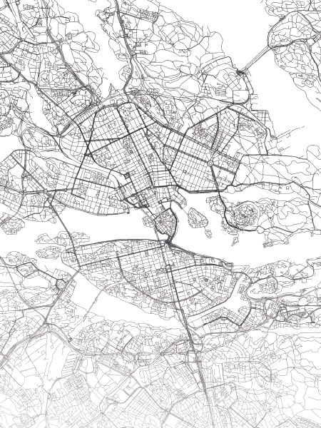 Handpicked En svarthvit plakat med et Stockholm-kart i svarthvitt. Veldig stilrent motiv som passer ordentlig godt i en enkel, svart ramme. Kjempefin på stua, og fin å kombinere sammen med andre plakater i valgfri stil. Hvorfor ikke noe botanisk eller en tekstplakat? Om du lager en bildevegg, kan du kombinere mange motiv i forskjellige størrelser og få en levende vegg i hjemmet.