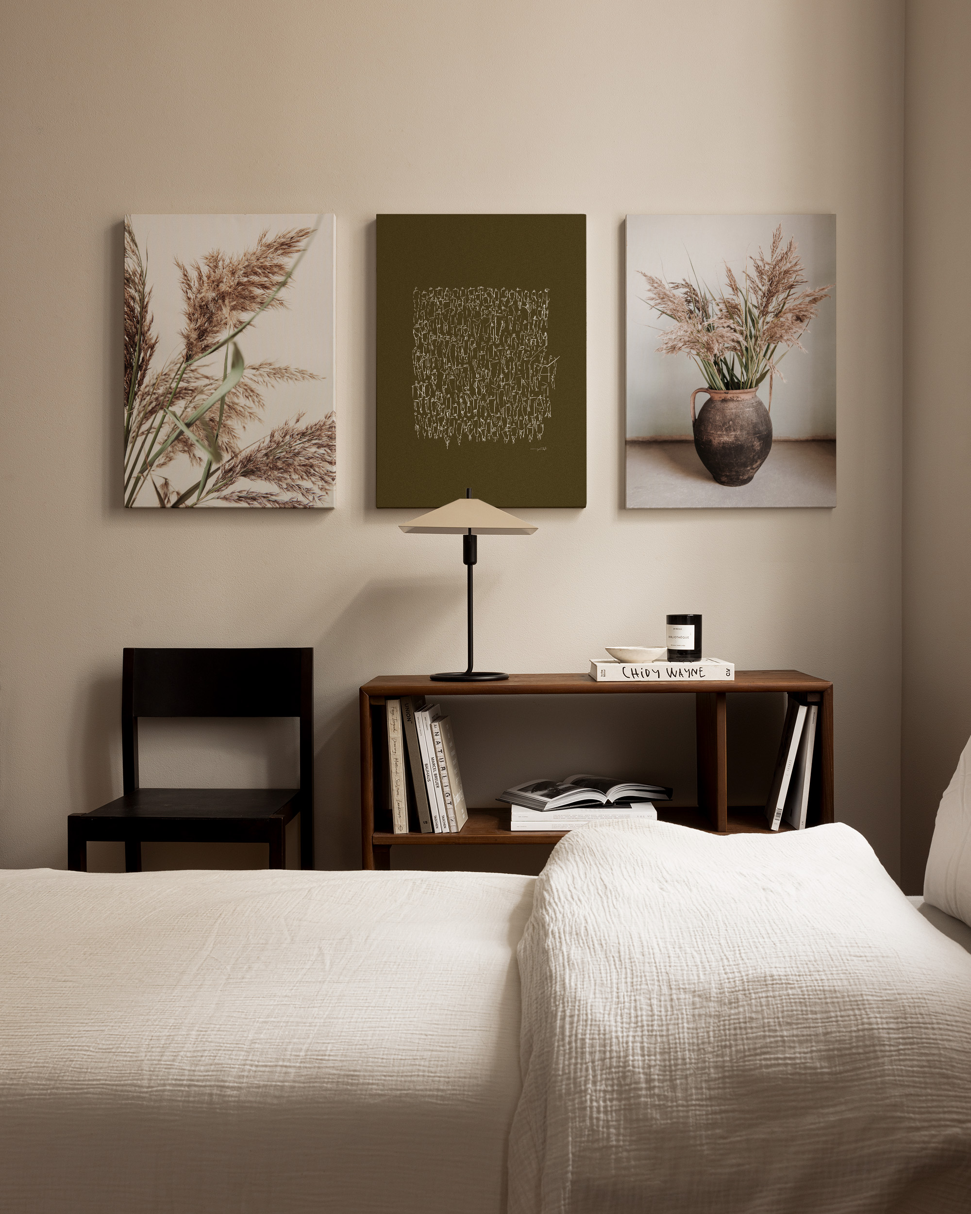 Fra 429 krTre lerretsbilder med botaniske motiver i brune og beige toner. Perfekt lerrets veggkunst-sett for å skape et rolig og naturlig utseende i hjemmet ditt.