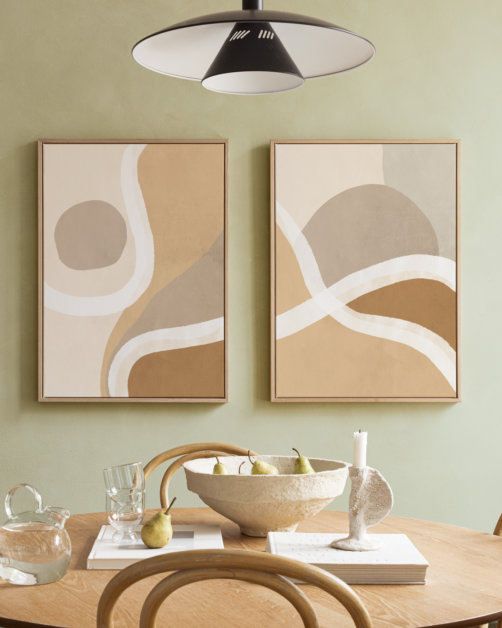 Fra 429 krTo abstrakte lerretsbilder med beige, brune og hvite kurver. Perfekt veggkunst til stuen eller soverommet ditt.