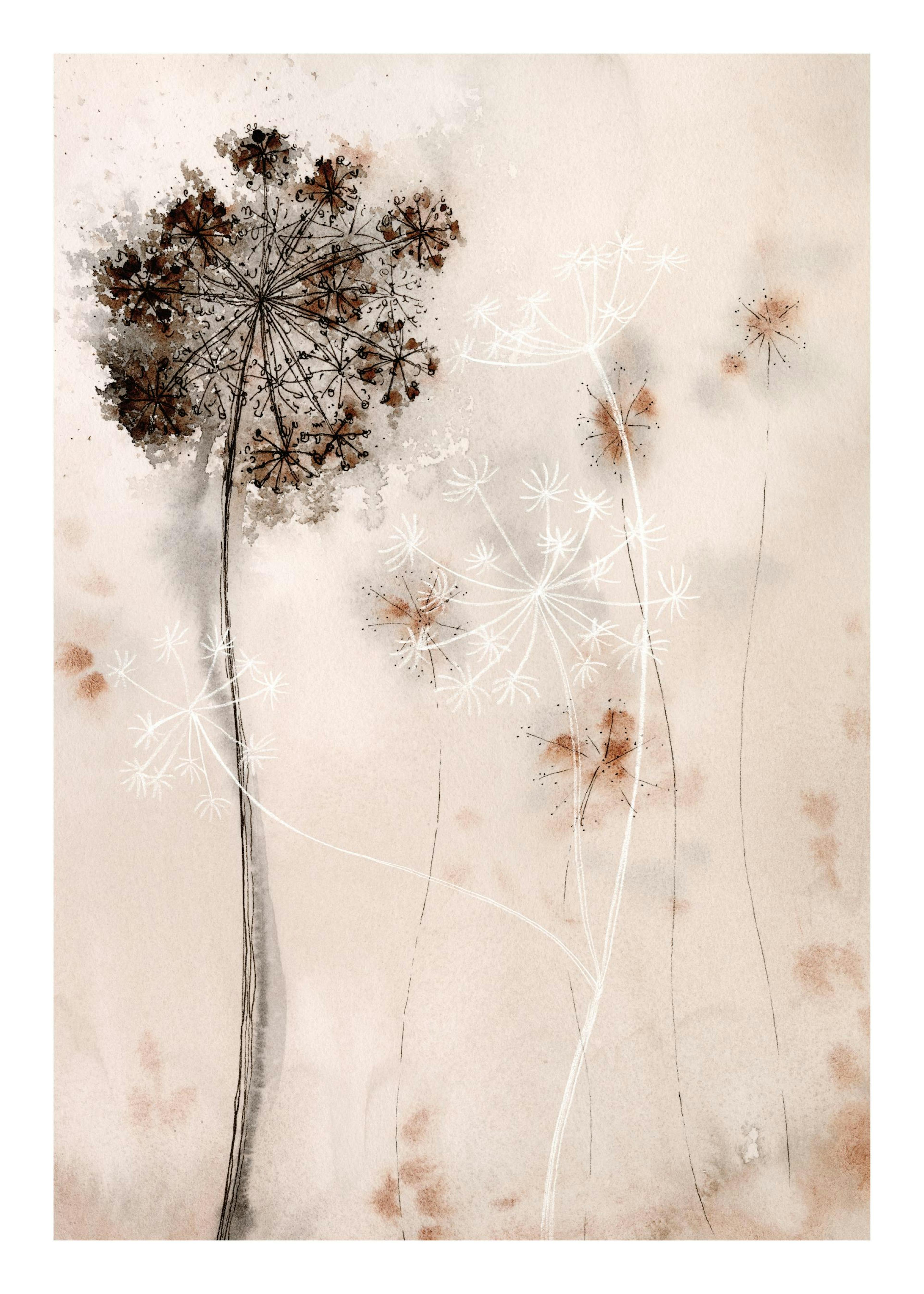 Plakat av en løvetann med en overskyet bakgrunn