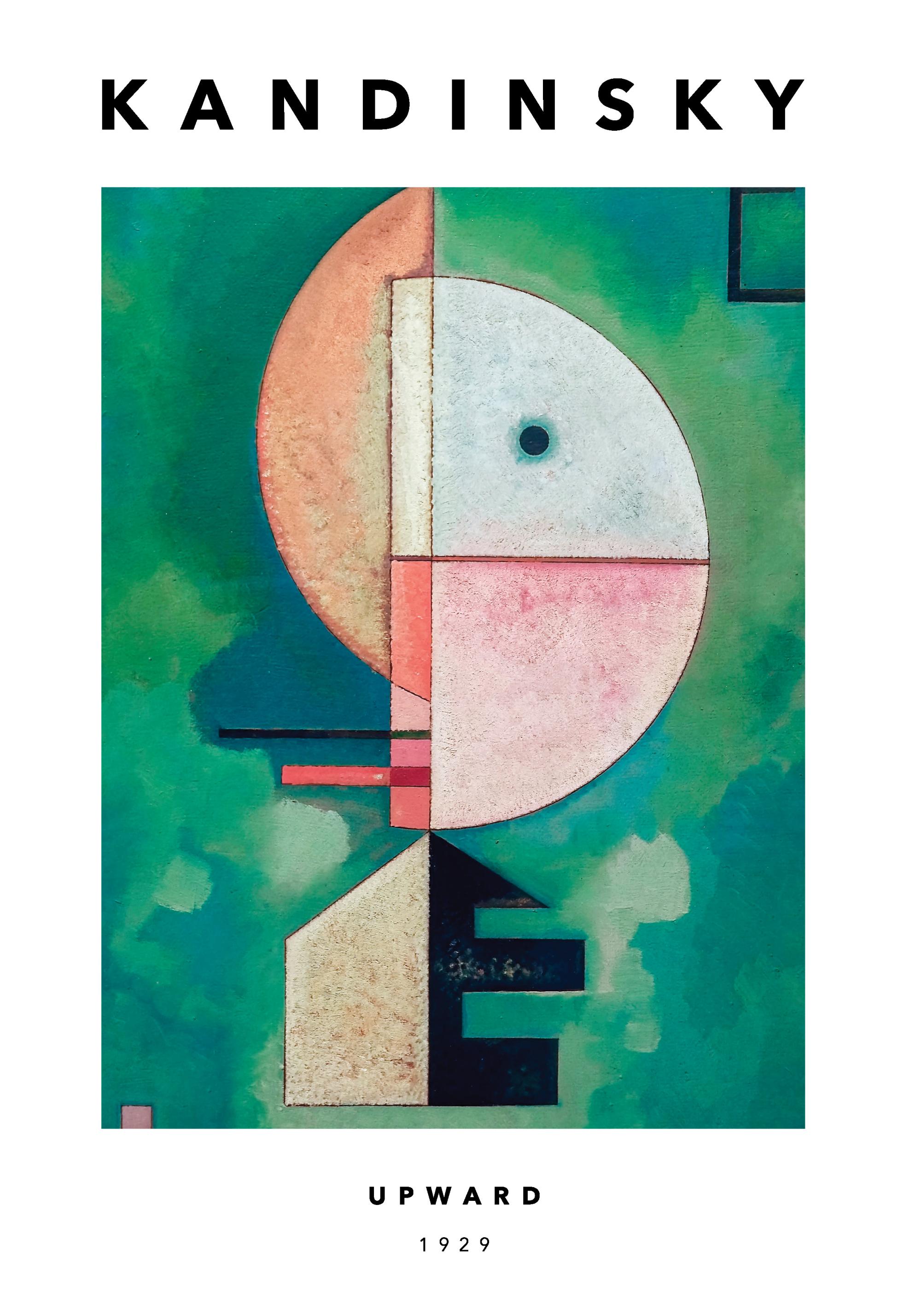 Plakat fra kunstneren Kandinsky. Et abstrakt motiv med en sterk grønnfarge sammen med forskjellige former og sirkler, med teksten «Upward 1929». En plakat med klassisk kunst passer alltid på veggen.
