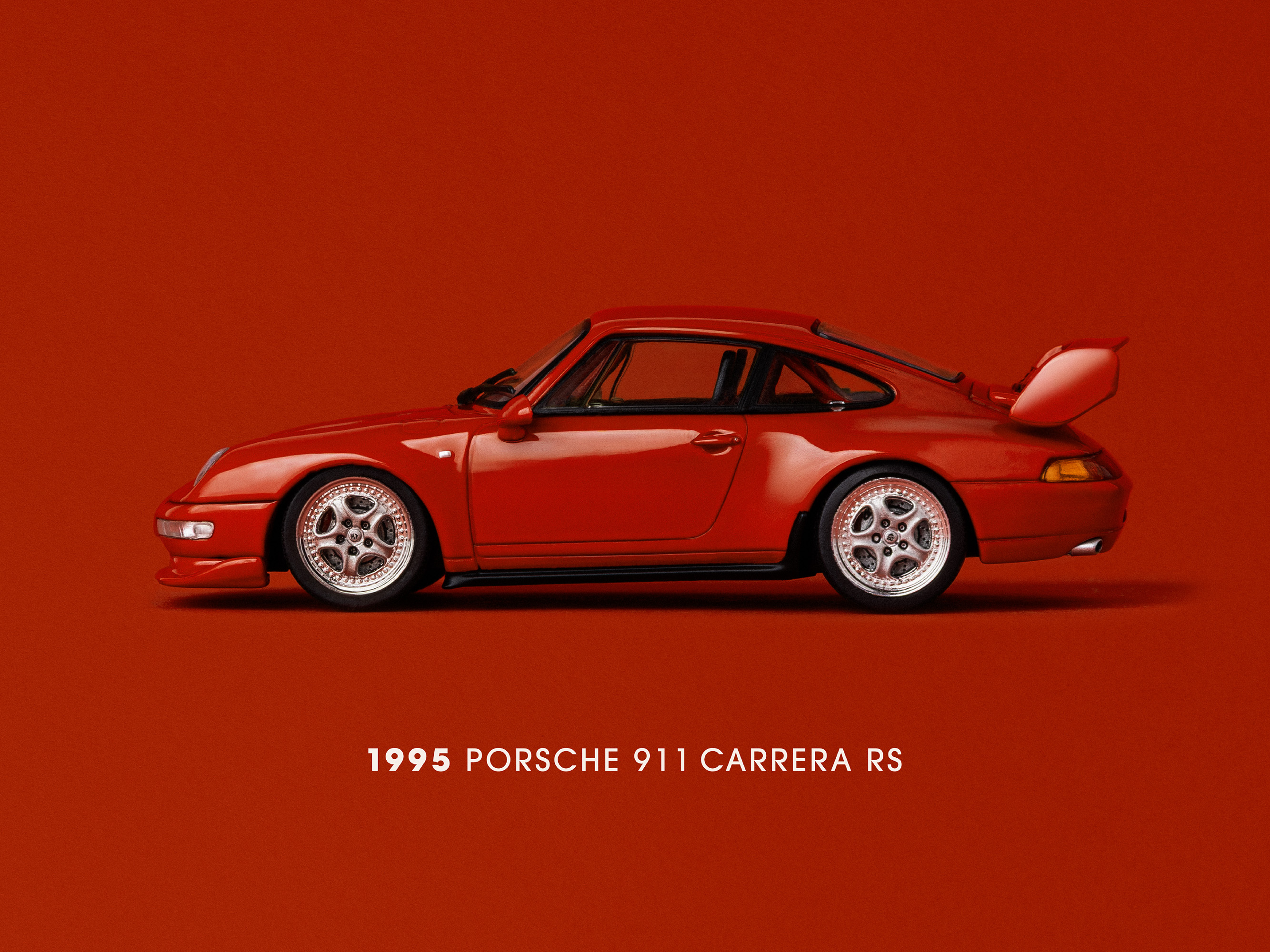 Fra 429 krEn rød sportsbilplakat med et elegant design vist fra siden. Har en bakspoiler og skinnende sølvhjul mot en rød bakgrunn.